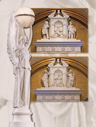 Vincent AlfanoVincent Alfano was a well-known artist who produced work for the Capitol building during its construction. Alfano was both a painter and a sculptor. A native of Naples, Italy, he had studied at the Academy of Naples under famous painters Domenico Morelli and Giuseppe Palizzi. He later became a professor of art at that Academy. Alfano emigrated to America in 1898, attracted largely by commissions from the growing American Renaissance movement, which enticed numerous Italian artists. Alfano took up residence in New York and taught at the New York Industrial Museum. In 1902 he was given his Capitol commission, which was to execute sculptural groups for the two entrance ways inside the building's main vestibule. The figures are allegorical representations located above the door pediments. The north group represents the early Commonwealth and its contact with Native Americans. The south group represents a Commonwealth enriched by arts and sciences. A theme of war and peace through which society has progressed are also espoused in both of the works. From Joseph Huston's designs, Alfano also modeled the allegorical figures over the pediments at the second floor entrances to the House and Senate Chambers. The figures over the House represent "Truth" and "Justice," and those over the Senate "Legislature" and "Finance." The groups were inspired by Michelangelo's Medici Tombs for the New Sacristy in Florence, and similar motifs that were in the Paris Opera House. Alfano also carved the marble caryatids, globes, and cherubs located at the Entresol floor of the grand staircase, along with the sculpted plaster heads of famous Pennsylvanians present in the north and south hyphen corridors. In addition, the pediments over both the House and Senate Chamber's second floor entrances were produced by Alfano. The two large plaster Angels of Light gracing the newel posts of the grand staircase may also have been sculpted by Alfano, or possibly by a contemporary of his, Louis Milione of Philadelphia. Unfortunately, the original artist for these pieces remains unknown. |
